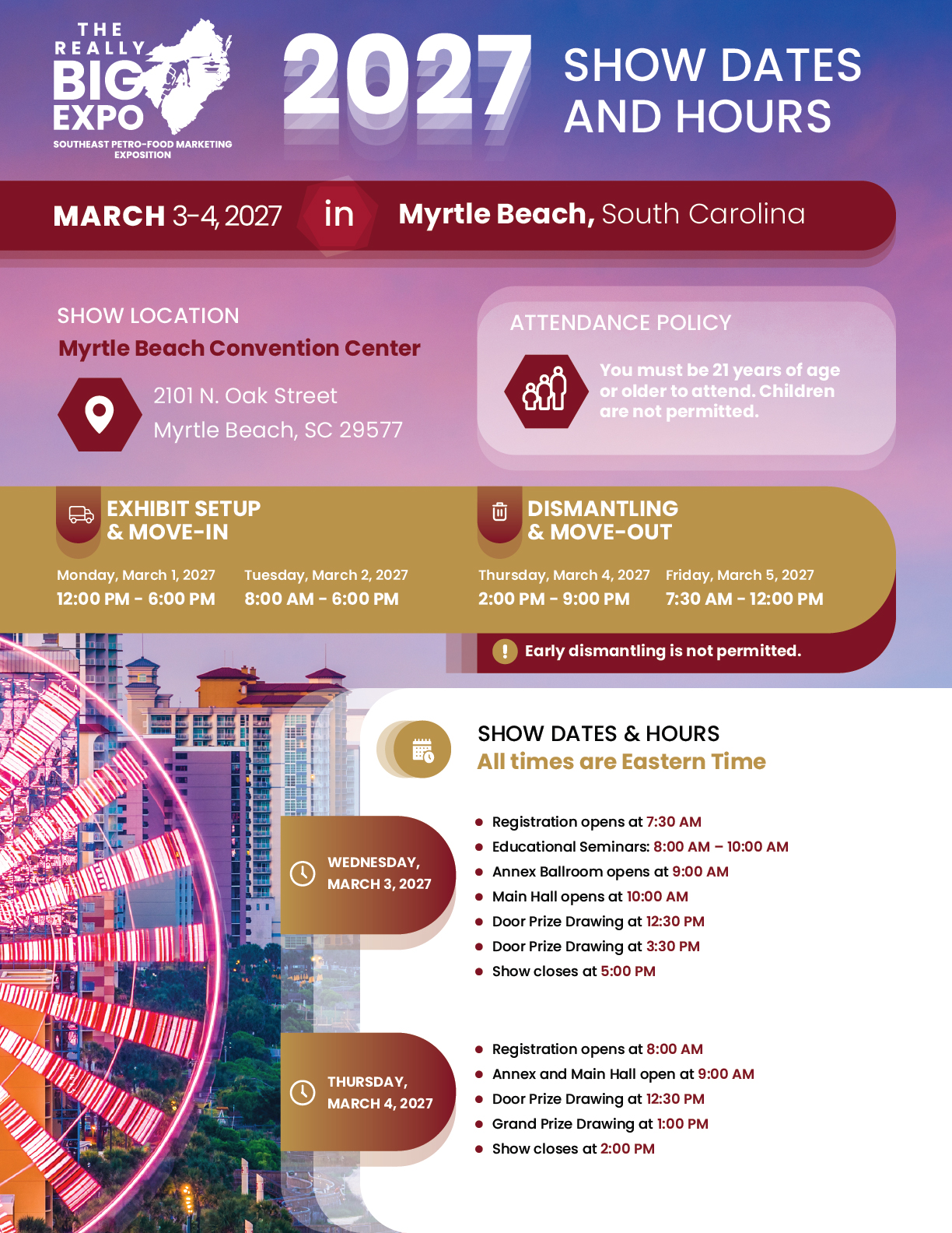 We look forward to welcoming qualified industry professionals to the Southeast Petro-Food Marketing Expo 2027. This page outlines attendance eligibility, event benefits, and helpful resources to ensure you make the most of your experience in Myrtle Beach.